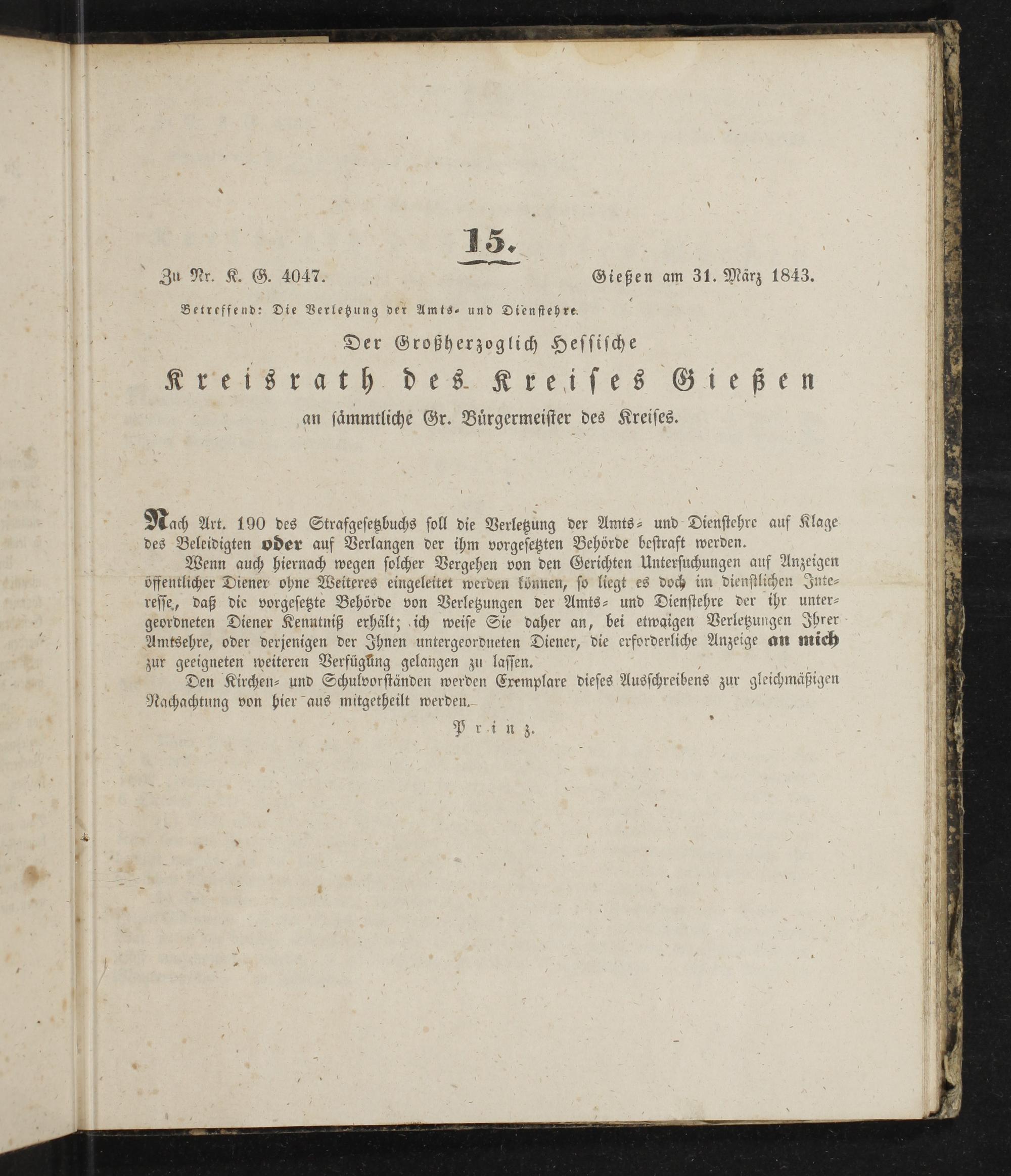 Amts-Blatt des Großherzoglich Hessischen Kreisraths des Kreises Gießen. 1843-1847