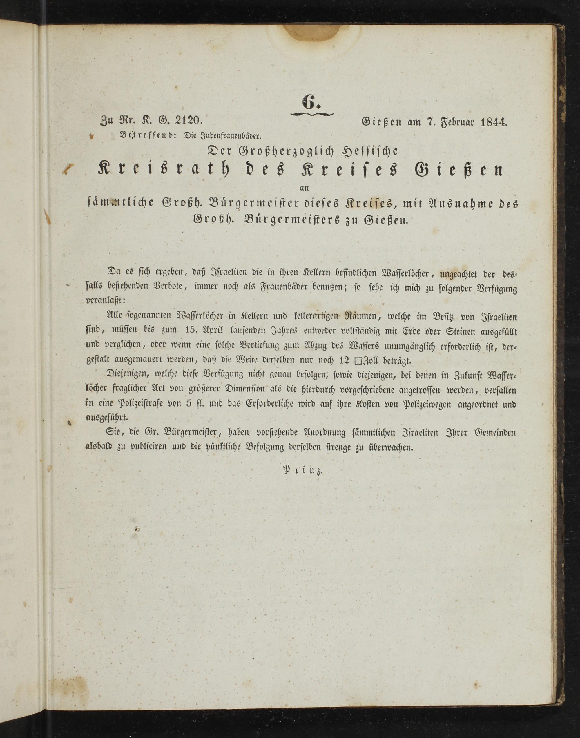 Amts-Blatt des Großherzoglich Hessischen Kreisraths des Kreises Gießen. 1843-1847