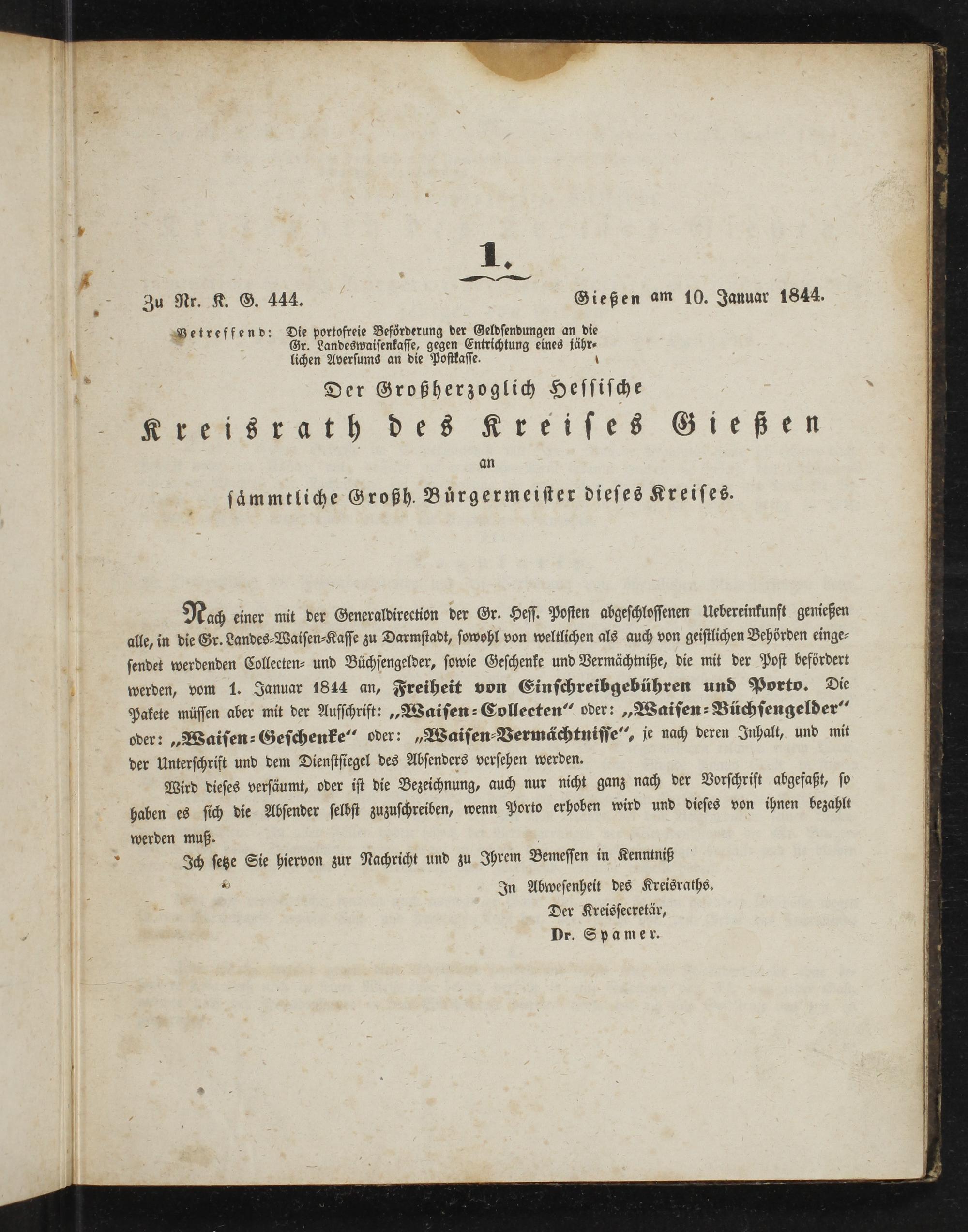 Amts-Blatt des Großherzoglich Hessischen Kreisraths des Kreises Gießen. 1843-1847