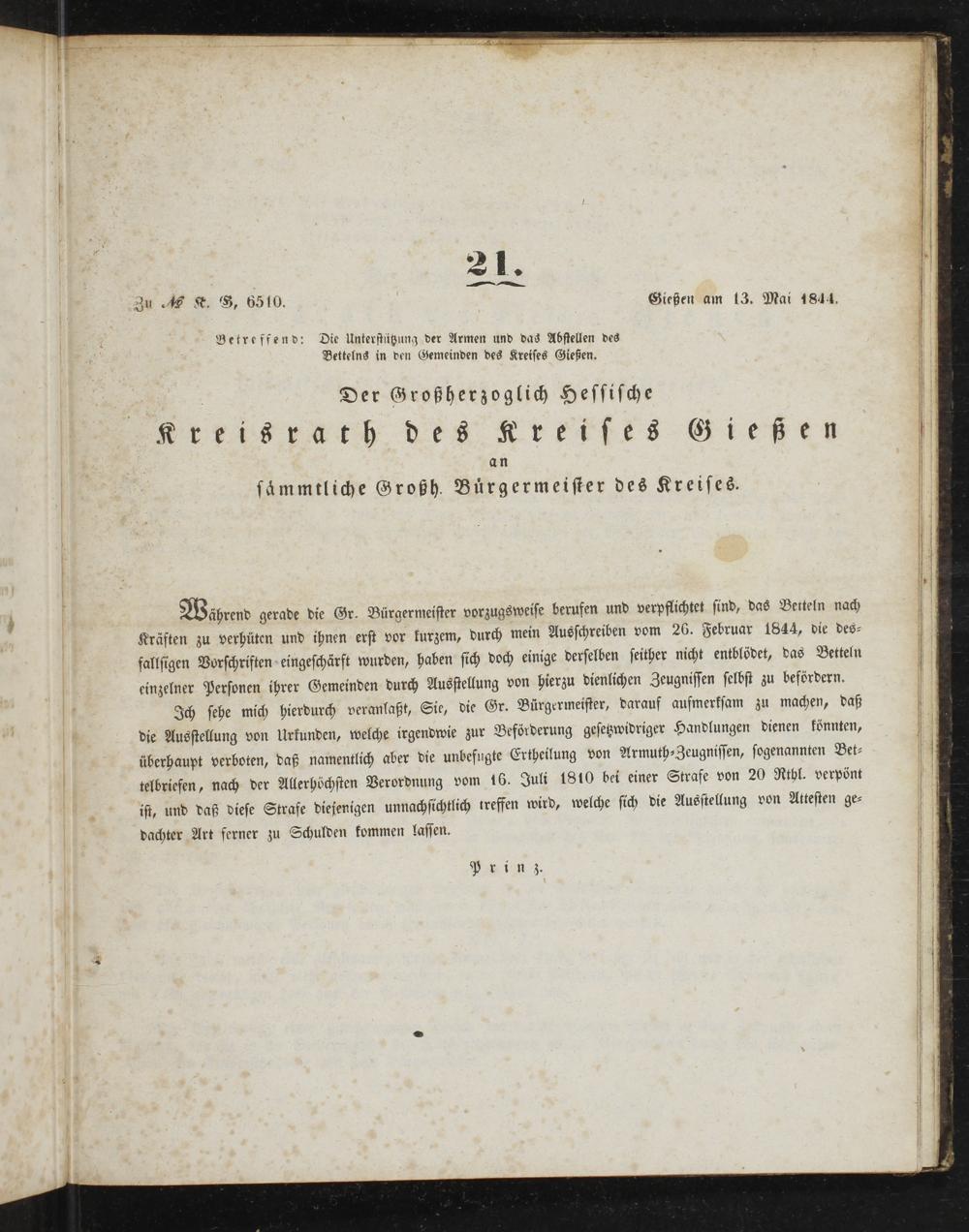 Amts-Blatt des Großherzoglich Hessischen Kreisraths des Kreises Gießen. 1843-1847
