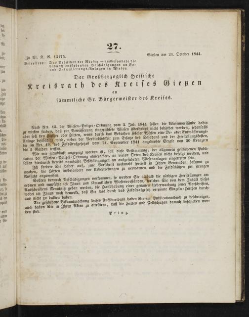 Amts-Blatt des Großherzoglich Hessischen Kreisraths des Kreises Gießen. 1843-1847