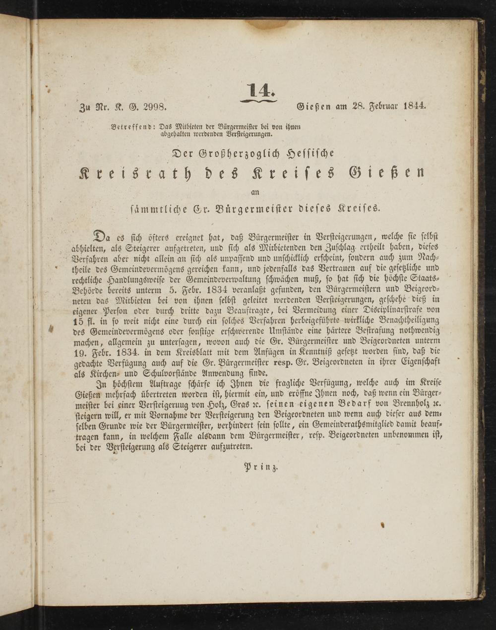 Amts-Blatt des Großherzoglich Hessischen Kreisraths des Kreises Gießen. 1843-1847