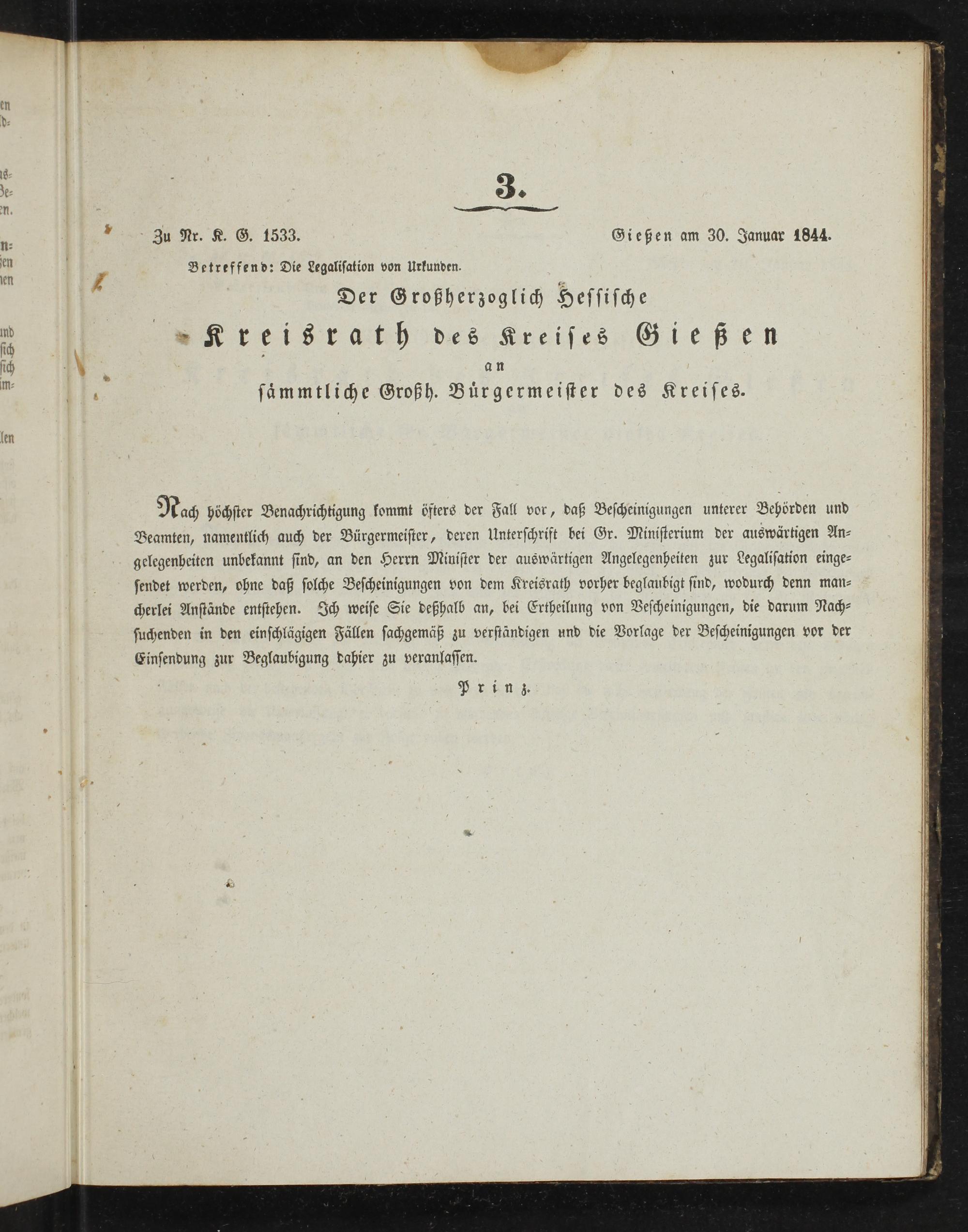 Amts-Blatt des Großherzoglich Hessischen Kreisraths des Kreises Gießen. 1843-1847