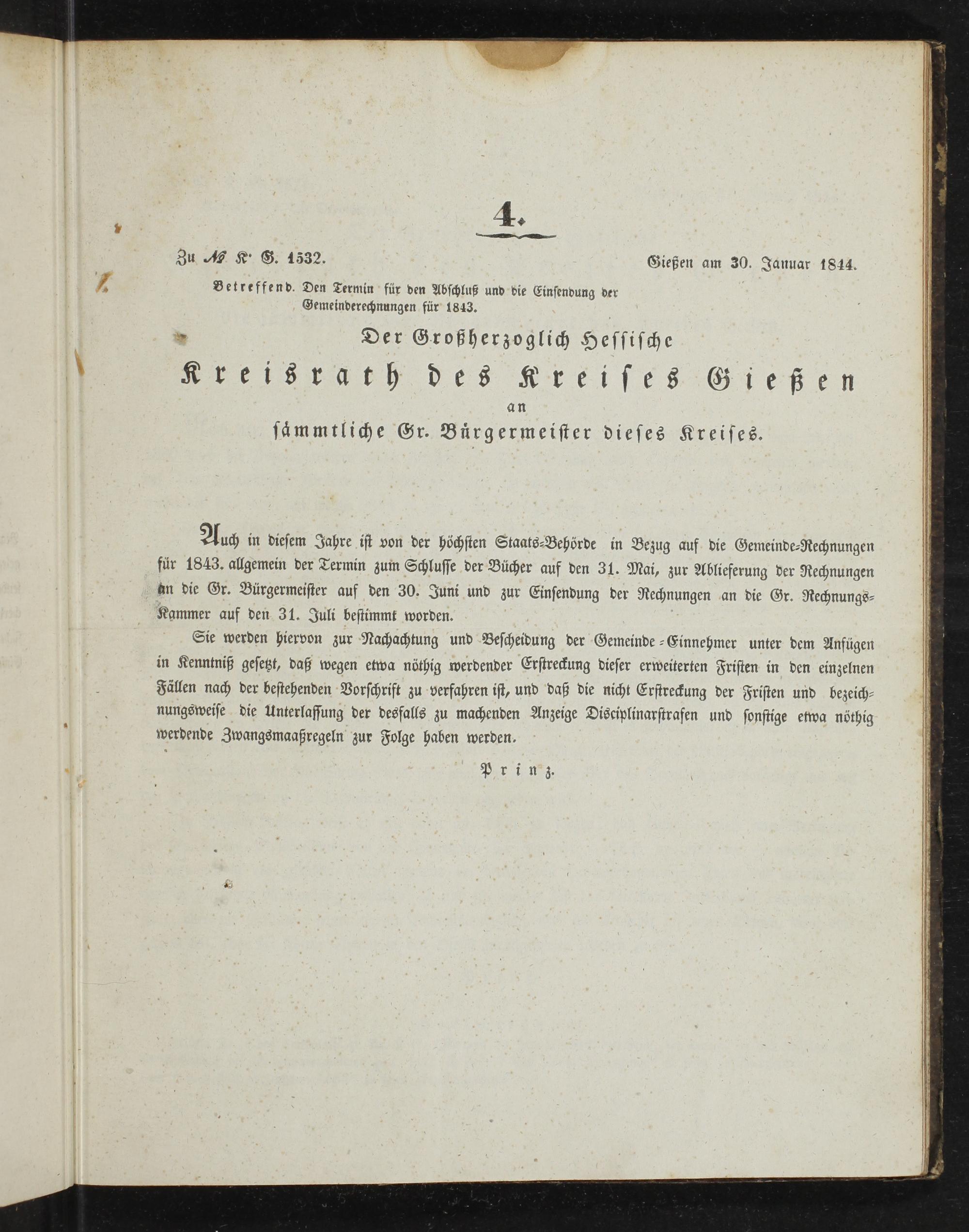 Amts-Blatt des Großherzoglich Hessischen Kreisraths des Kreises Gießen. 1843-1847