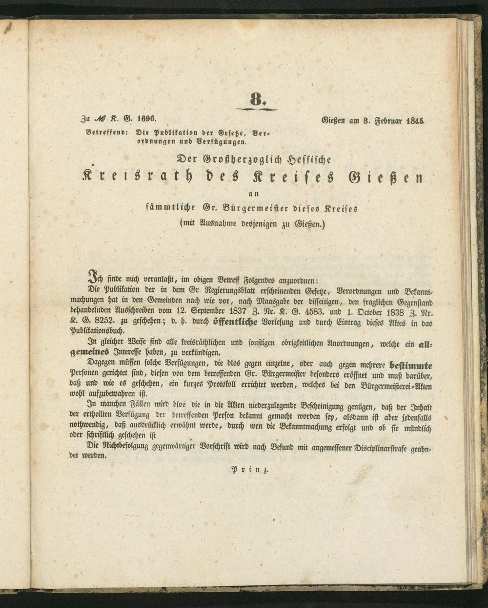 Amts-Blatt des Großherzoglich Hessischen Kreisraths des Kreises Gießen. 1843-1847