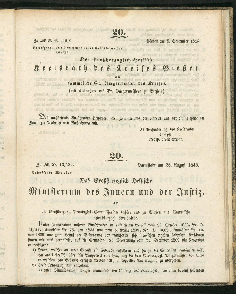 Amts-Blatt des Großherzoglich Hessischen Kreisraths des Kreises Gießen. 1843-1847