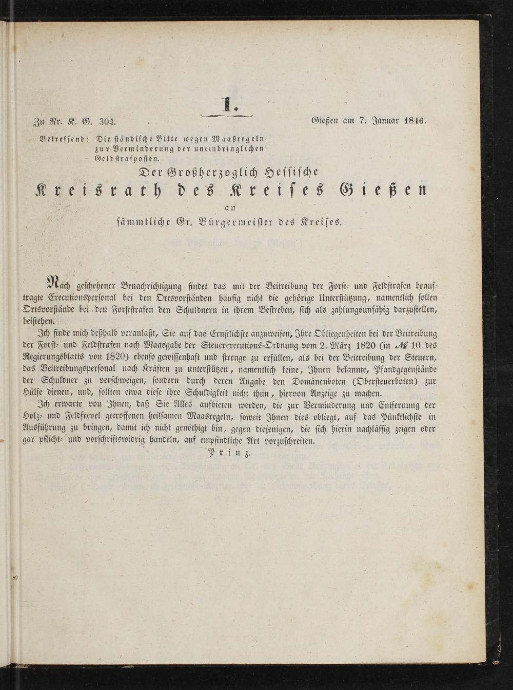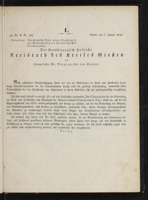Amts-Blatt des Großherzoglich Hessischen Kreisraths des Kreises Gießen. 1843-1847
