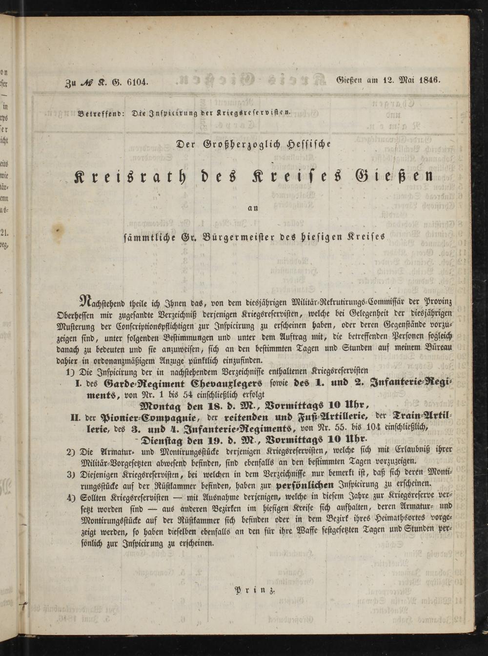 Amts-Blatt des Großherzoglich Hessischen Kreisraths des Kreises Gießen. 1843-1847