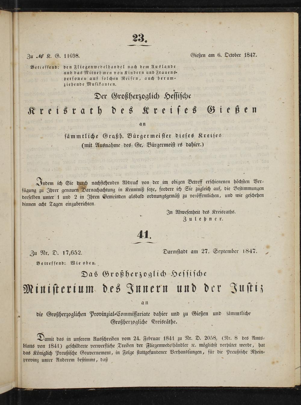 Amts-Blatt des Großherzoglich Hessischen Kreisraths des Kreises Gießen. 1843-1847
