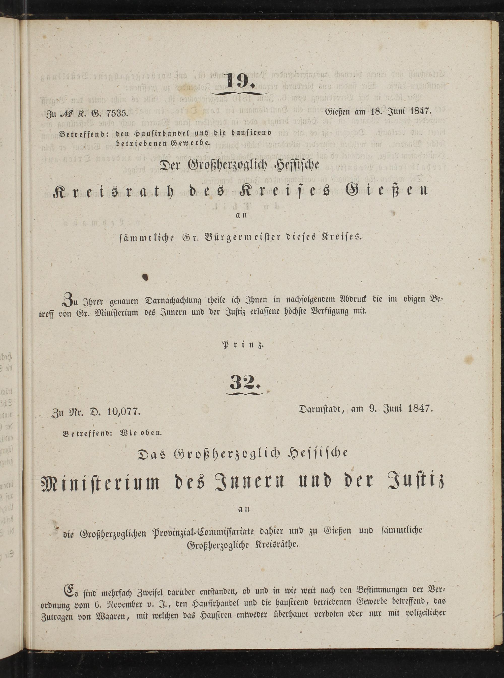Amts-Blatt des Großherzoglich Hessischen Kreisraths des Kreises Gießen. 1843-1847