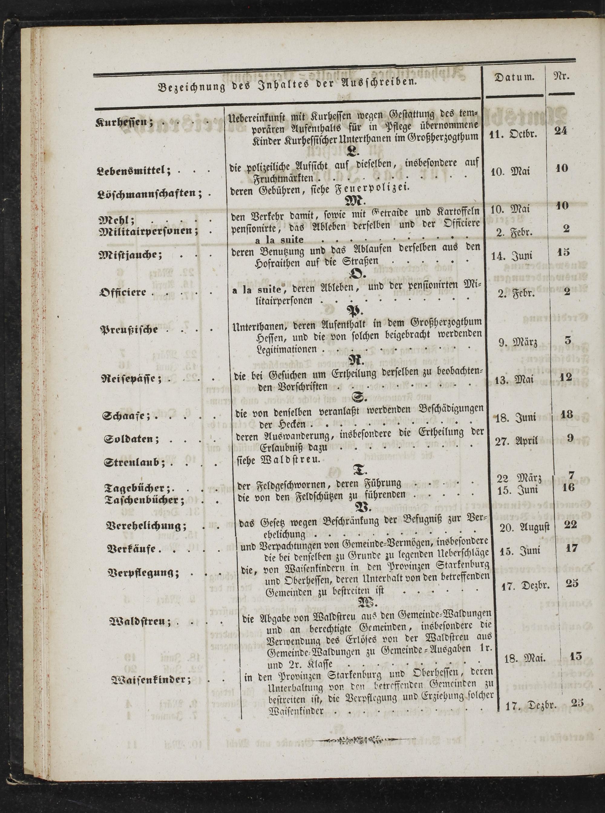 (31.12.1847) Inhaltsverzeichnis