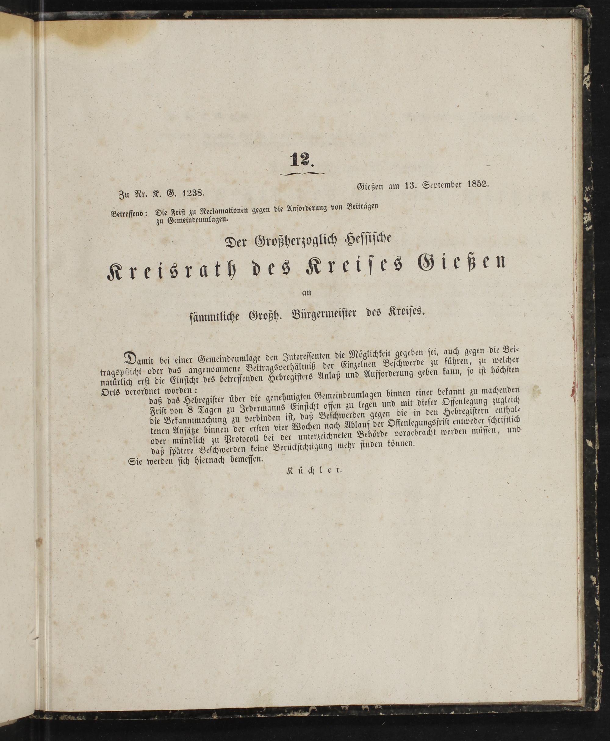 Amtsblatt des Kreisamts Gießen. 1852-1889