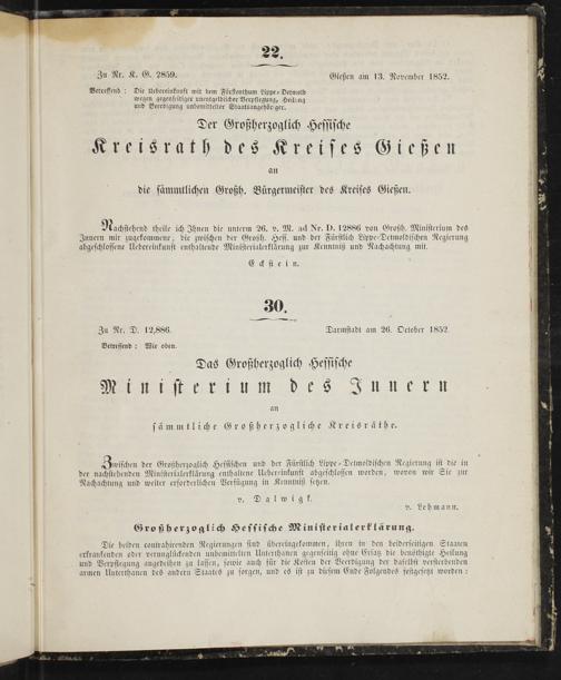 Amtsblatt des Kreisamts Gießen. 1852-1889