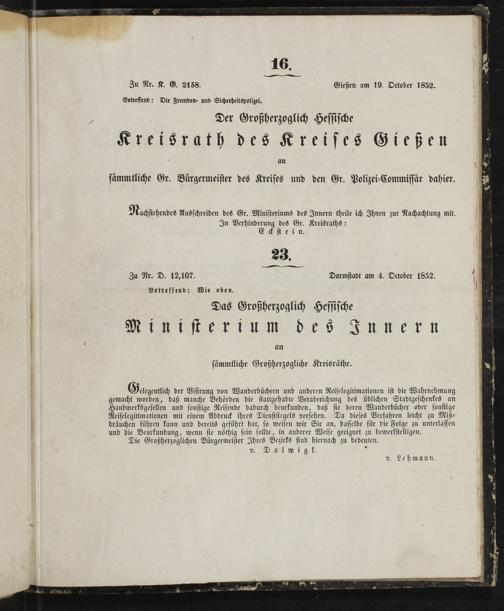Amtsblatt des Kreisamts Gießen. 1852-1889