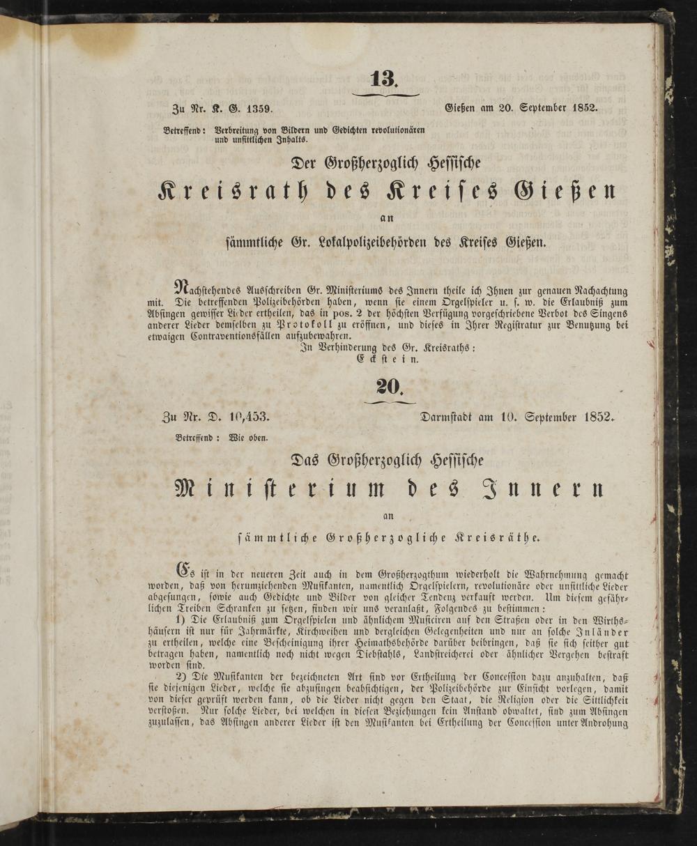 Amtsblatt des Kreisamts Gießen. 1852-1889