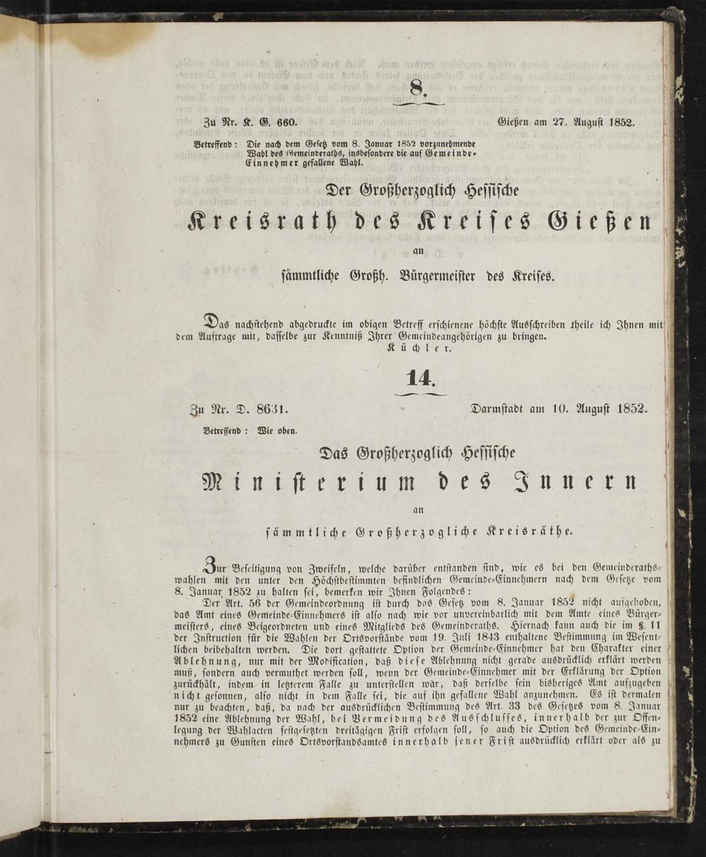 Amtsblatt des Kreisamts Gießen. 1852-1889