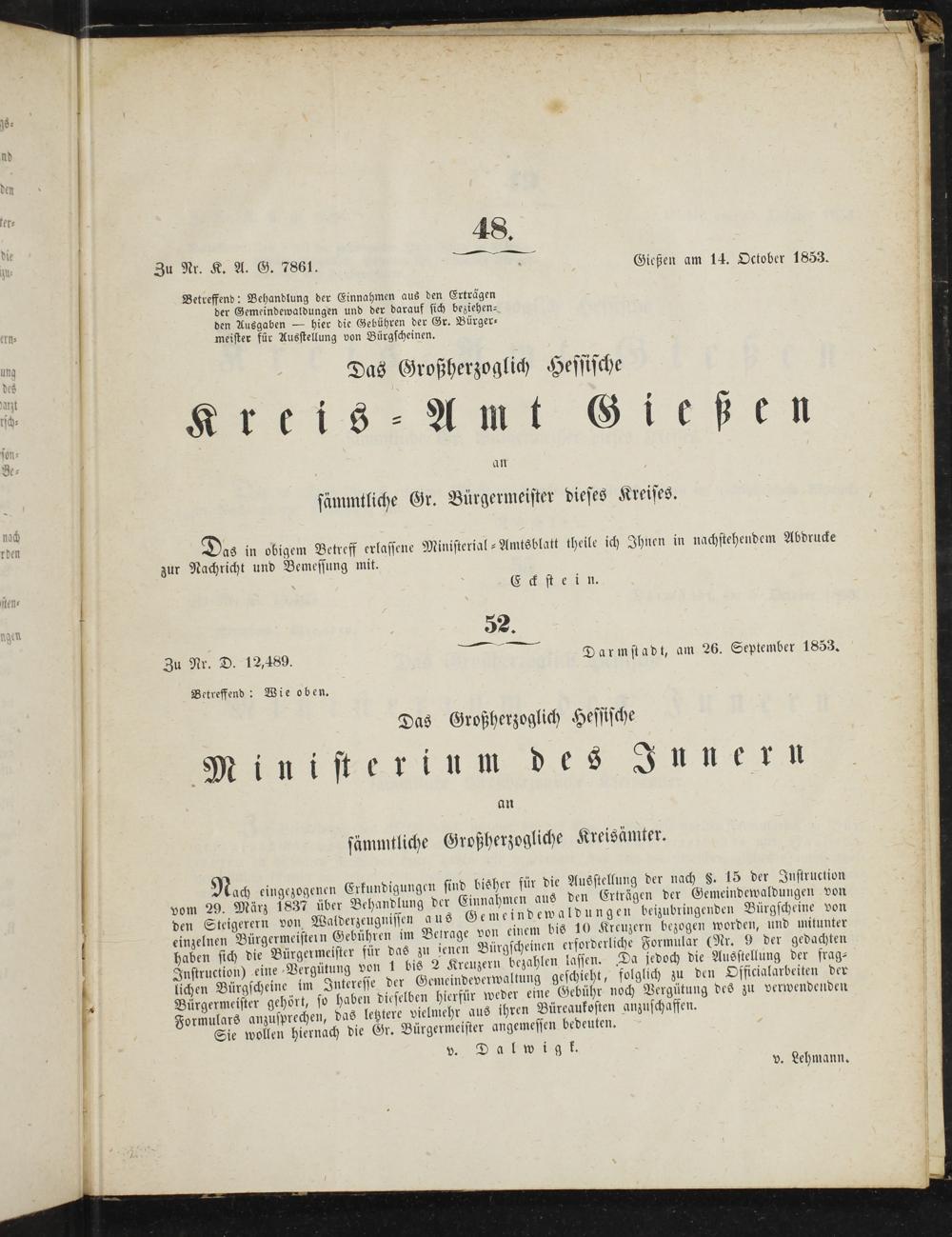 Amtsblatt des Kreisamts Gießen. 1852-1889