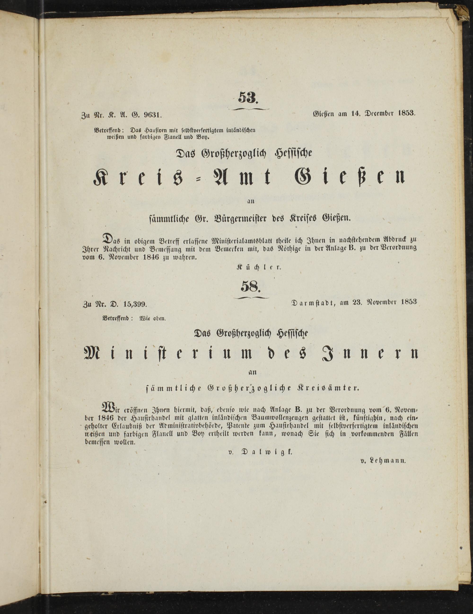 Amtsblatt des Kreisamts Gießen. 1852-1889