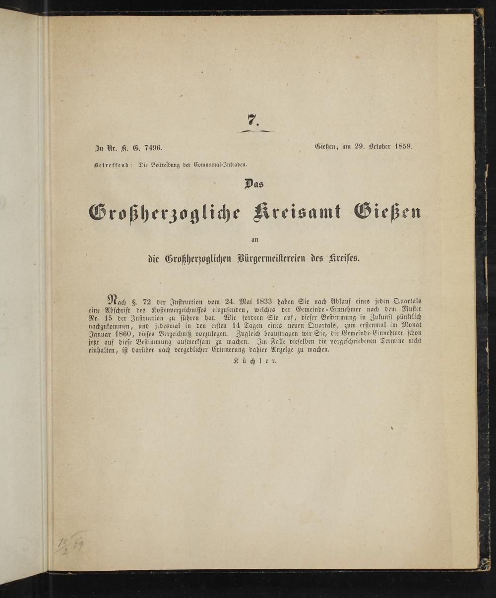 Amtsblatt des Kreisamts Gießen. 1852-1889