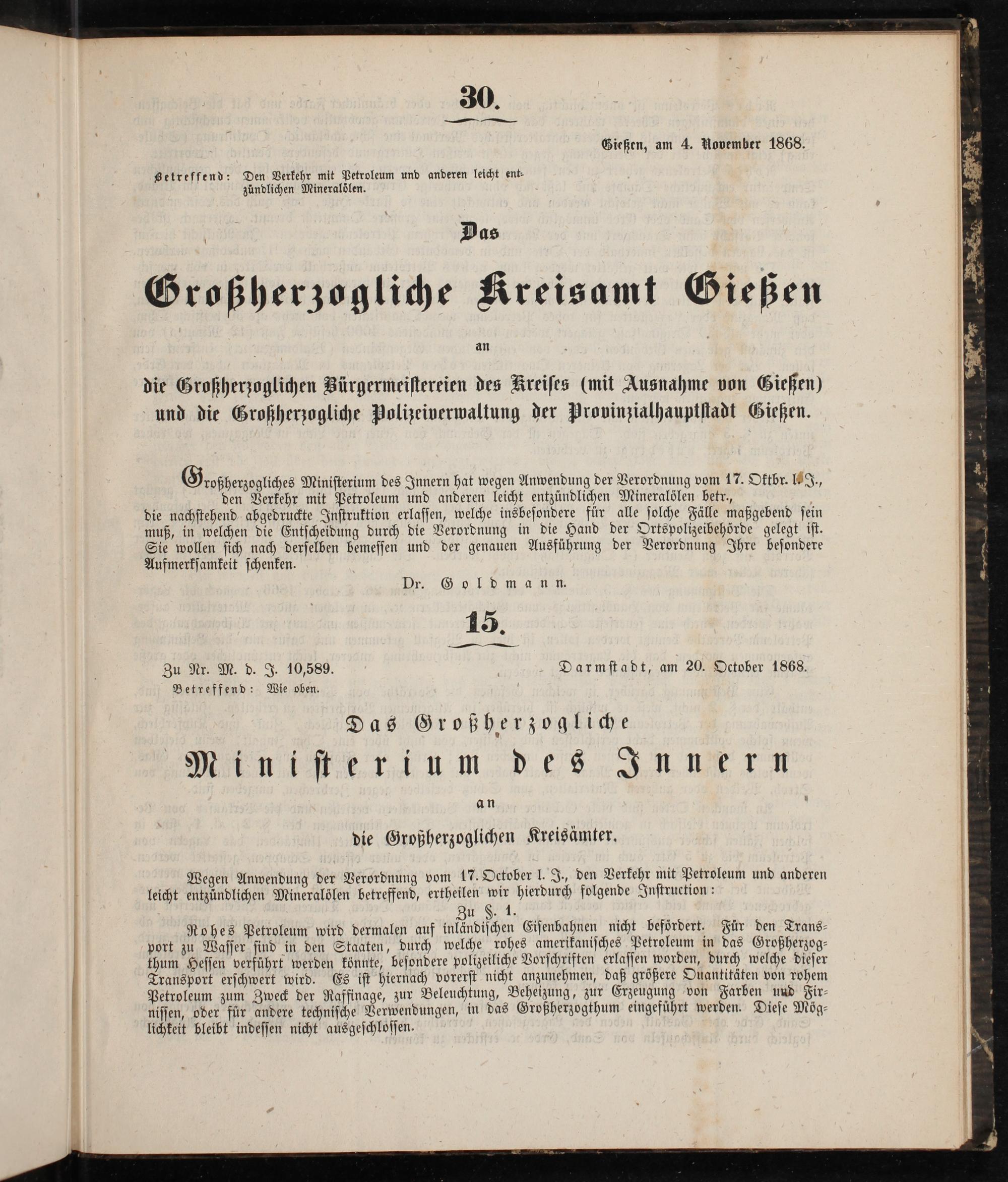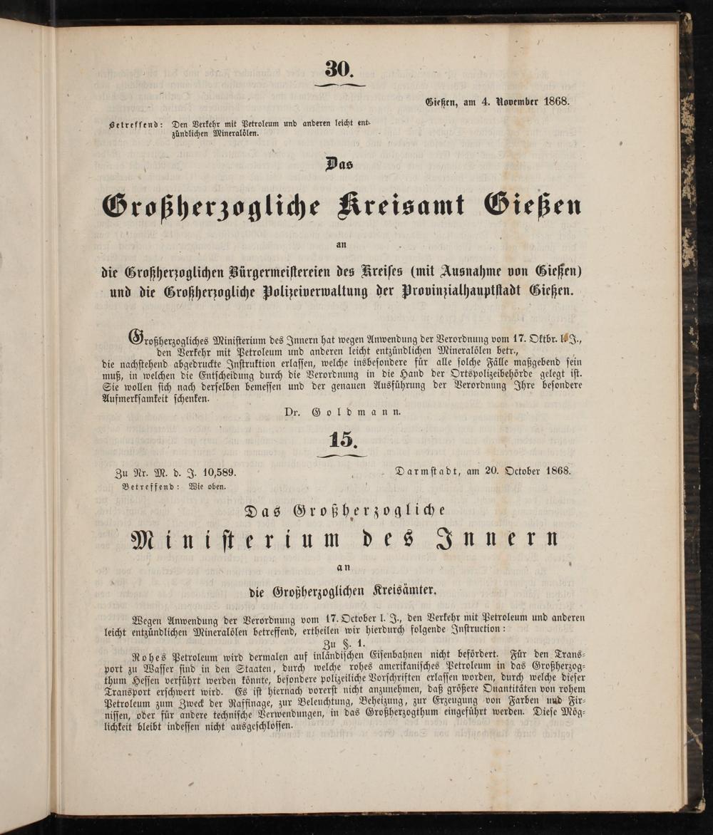 Amtsblatt des Kreisamts Gießen. 1852-1889