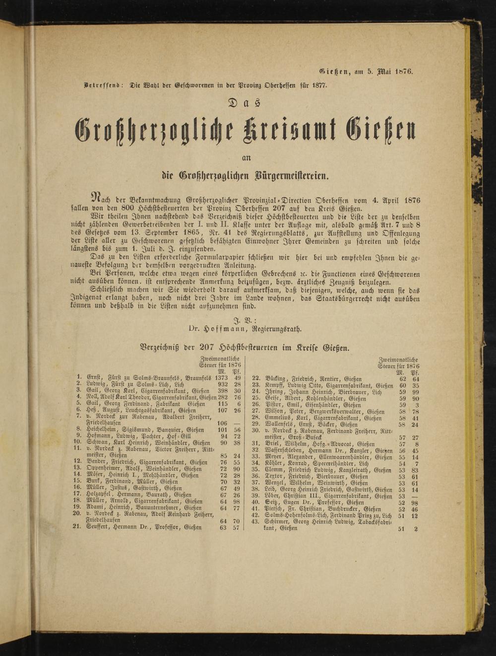 Amtsblatt des Kreisamts Gießen. 1852-1889