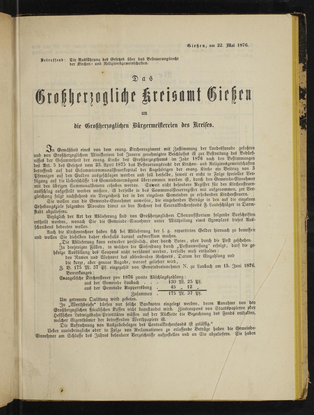 Amtsblatt des Kreisamts Gießen. 1852-1889