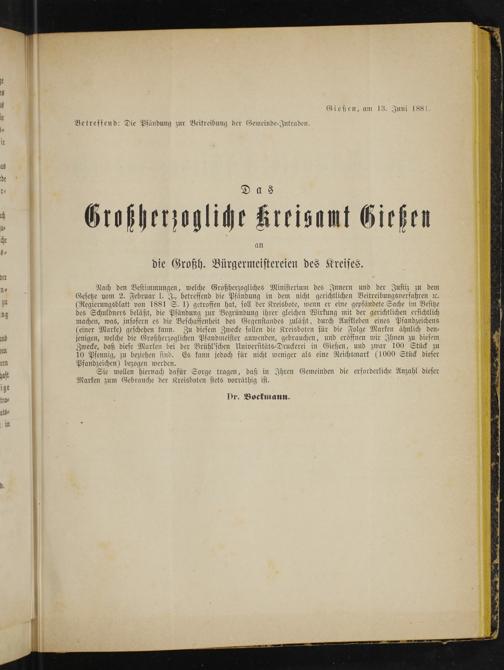 Amtsblatt des Kreisamts Gießen. 1852-1889