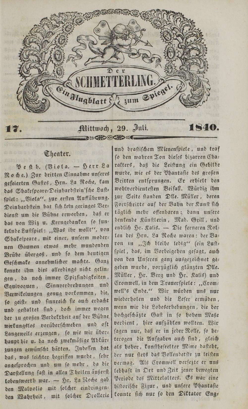 Der Spiegel für Kunst, Eleganz und Mode. 1835-1840