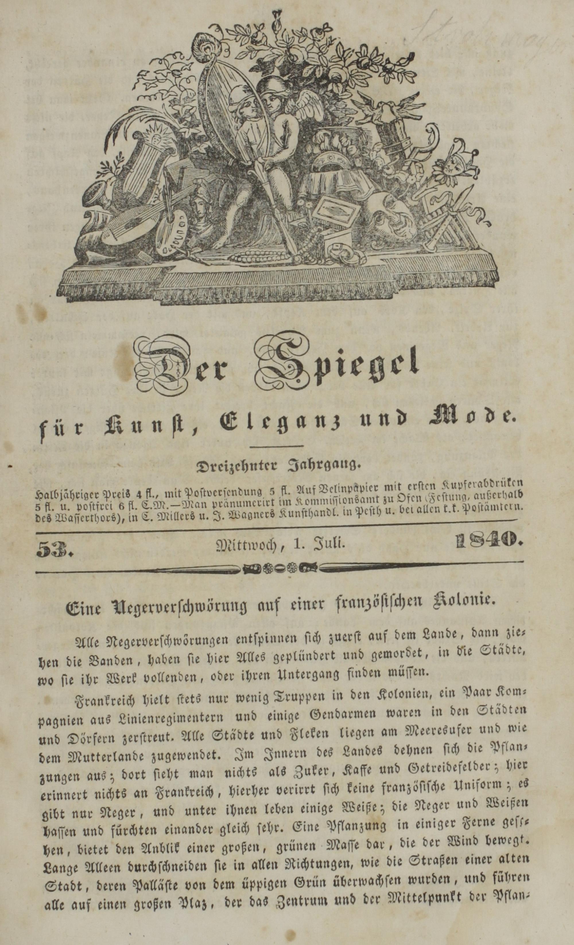 Der Spiegel für Kunst, Eleganz und Mode. 1835-1840