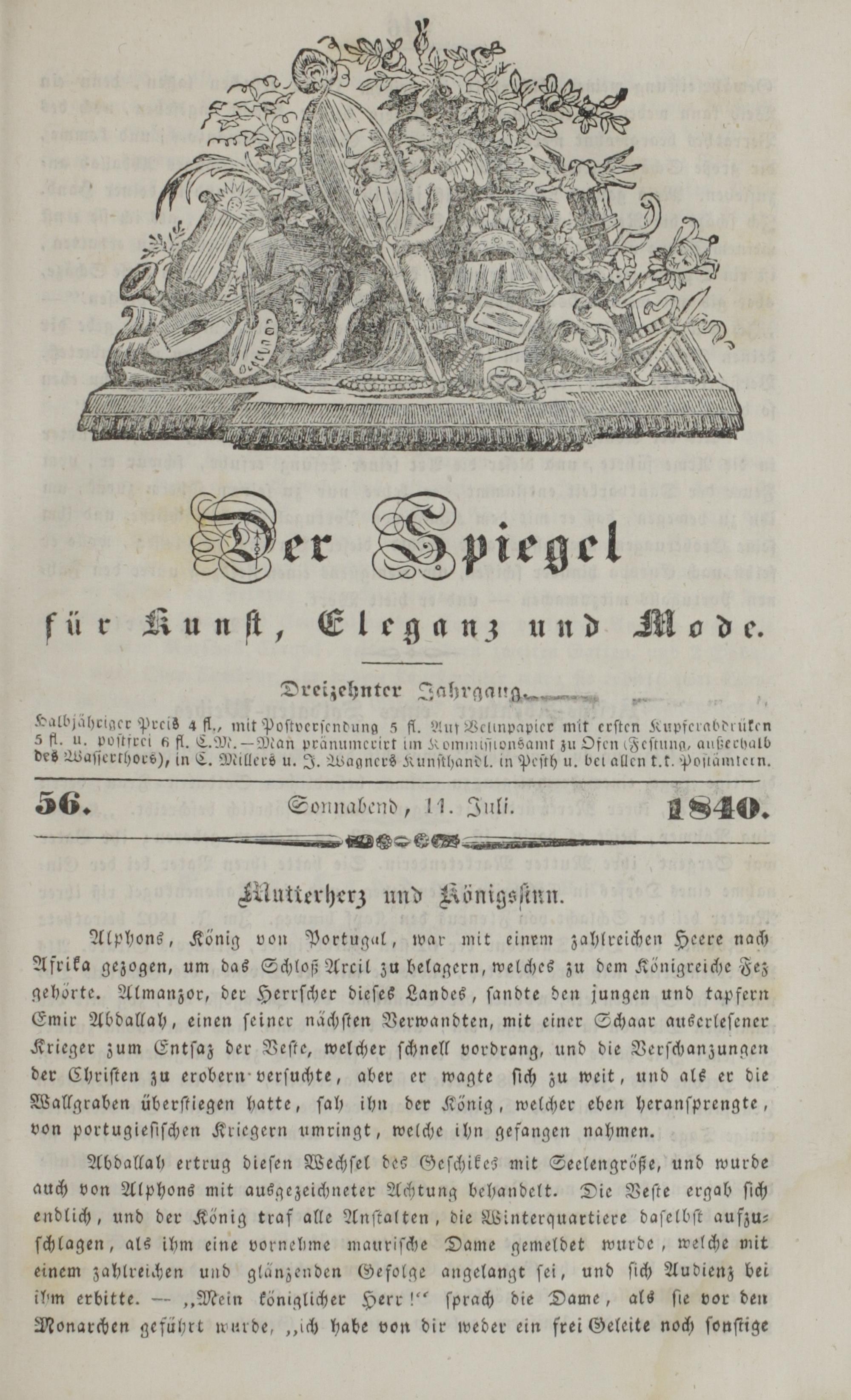 Der Spiegel für Kunst, Eleganz und Mode. 1835-1840