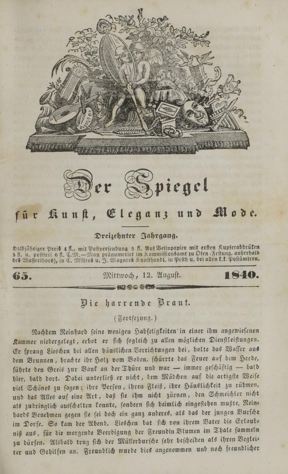 Der Spiegel für Kunst, Eleganz und Mode. 1835-1840