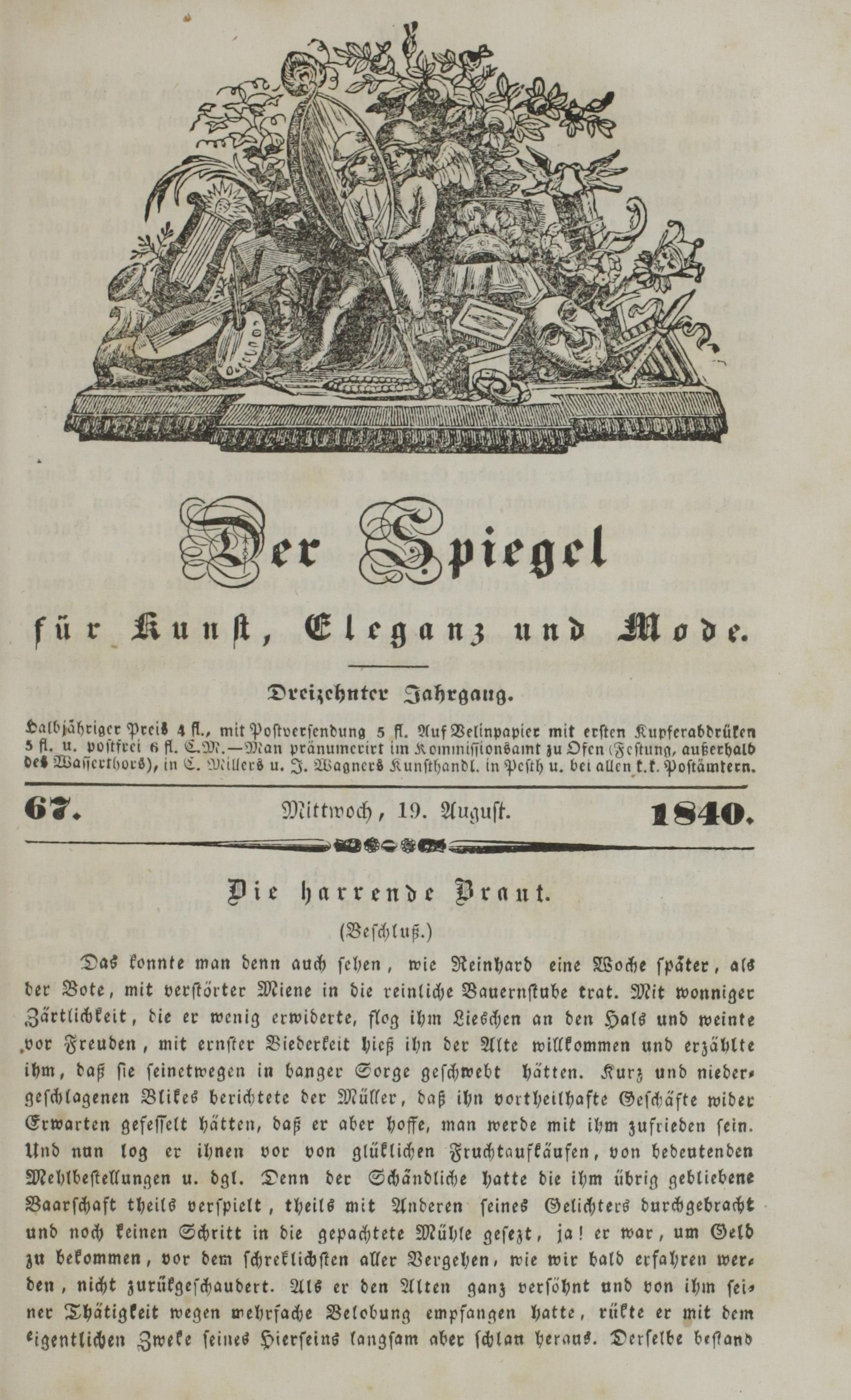 Der Spiegel für Kunst, Eleganz und Mode. 1835-1840