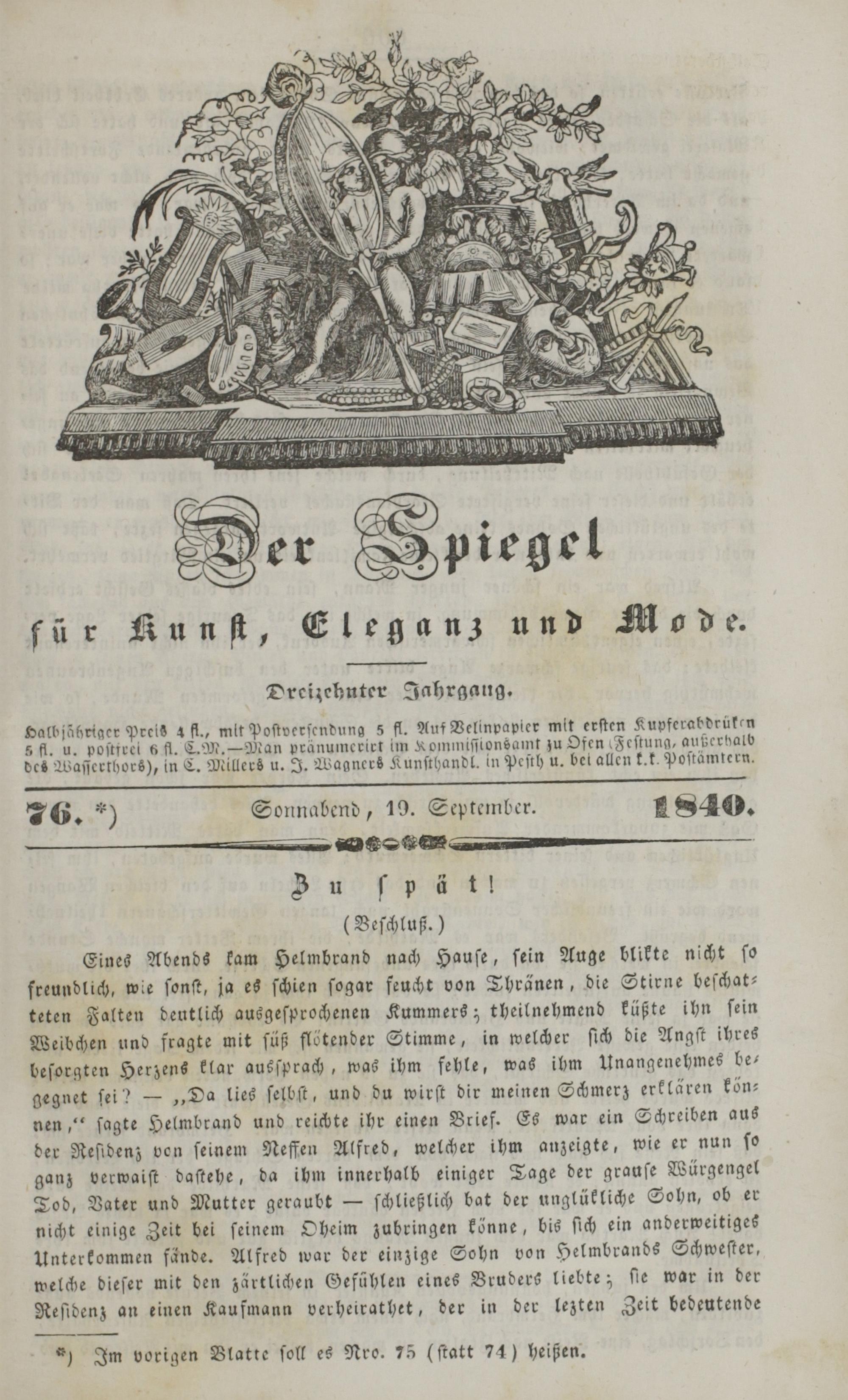Der Spiegel für Kunst, Eleganz und Mode. 1835-1840