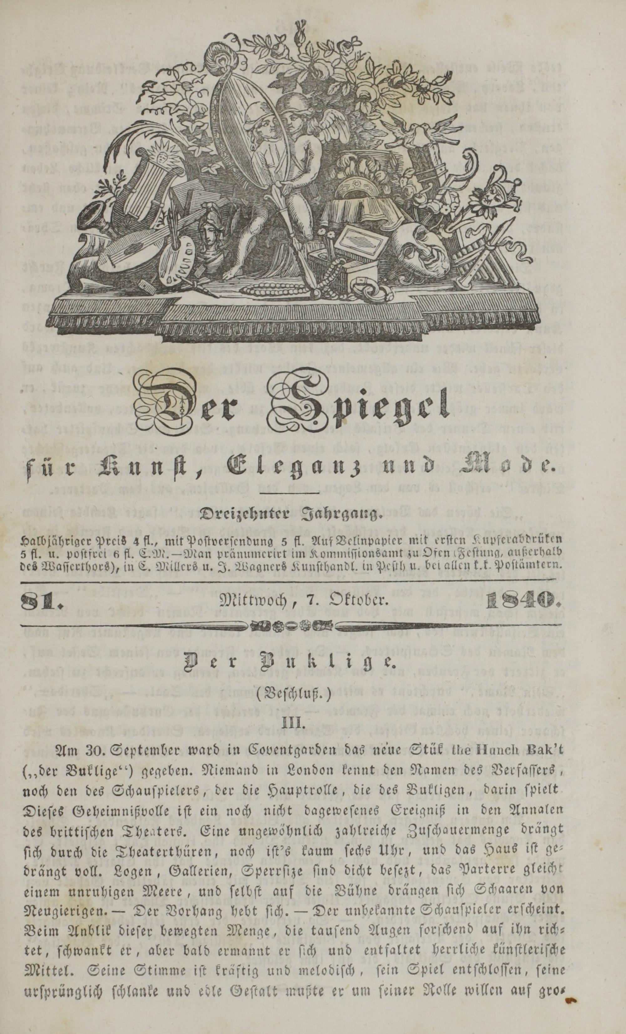 Der Spiegel für Kunst, Eleganz und Mode. 1835-1840