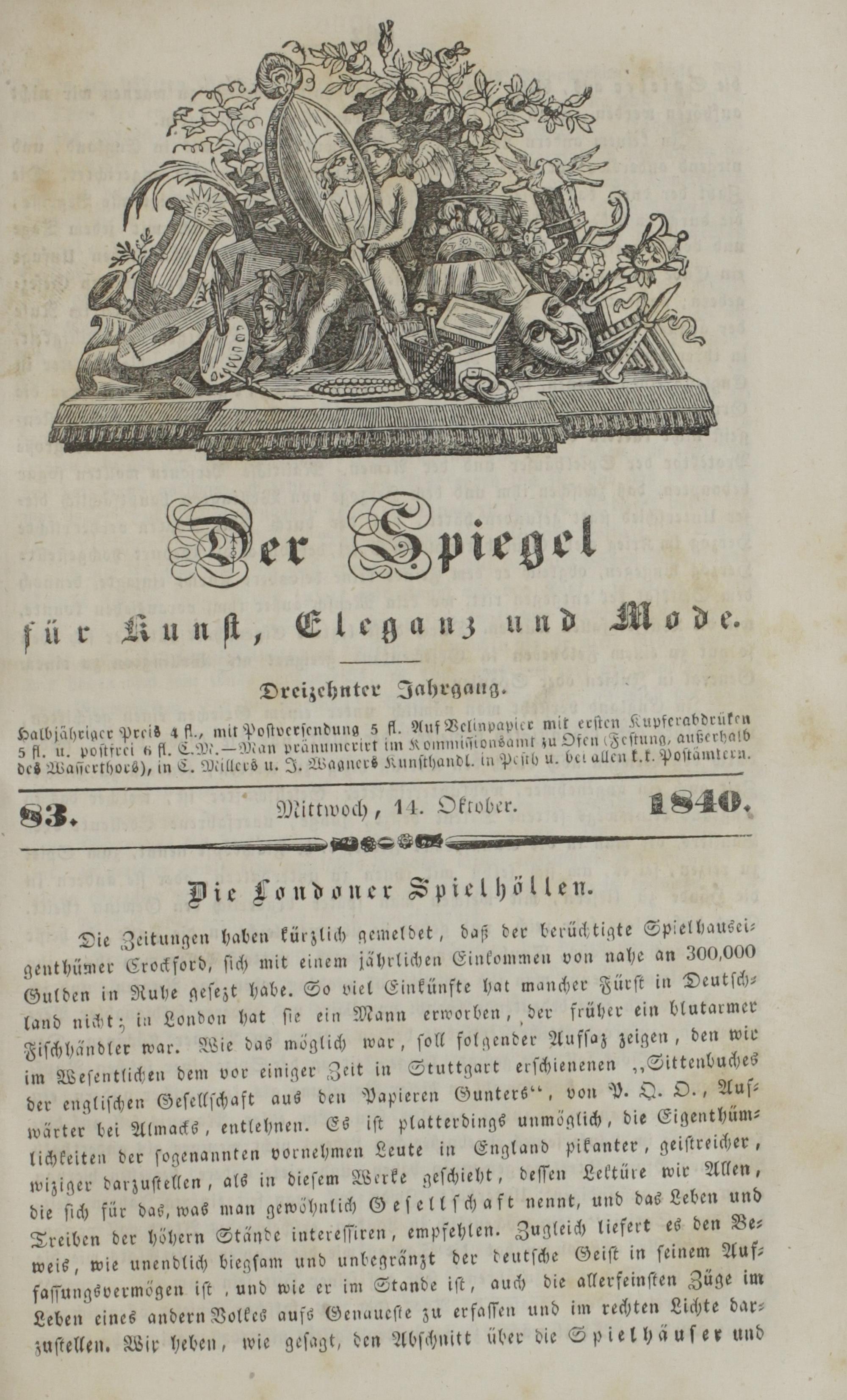 Der Spiegel für Kunst, Eleganz und Mode. 1835-1840