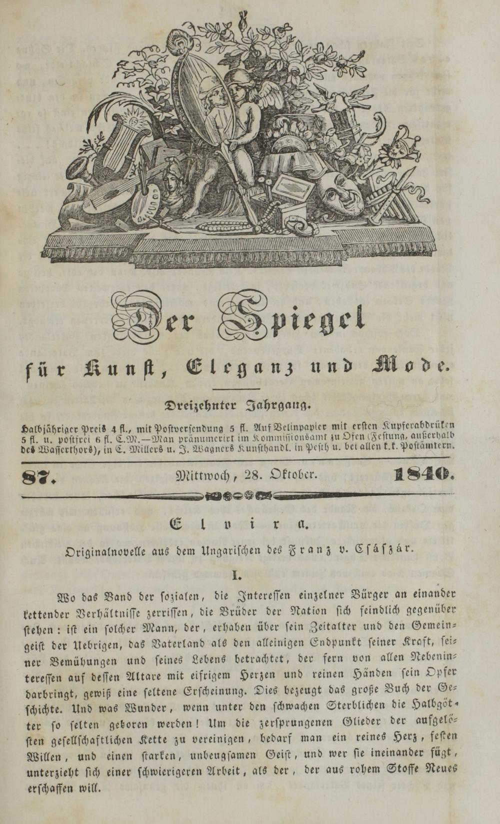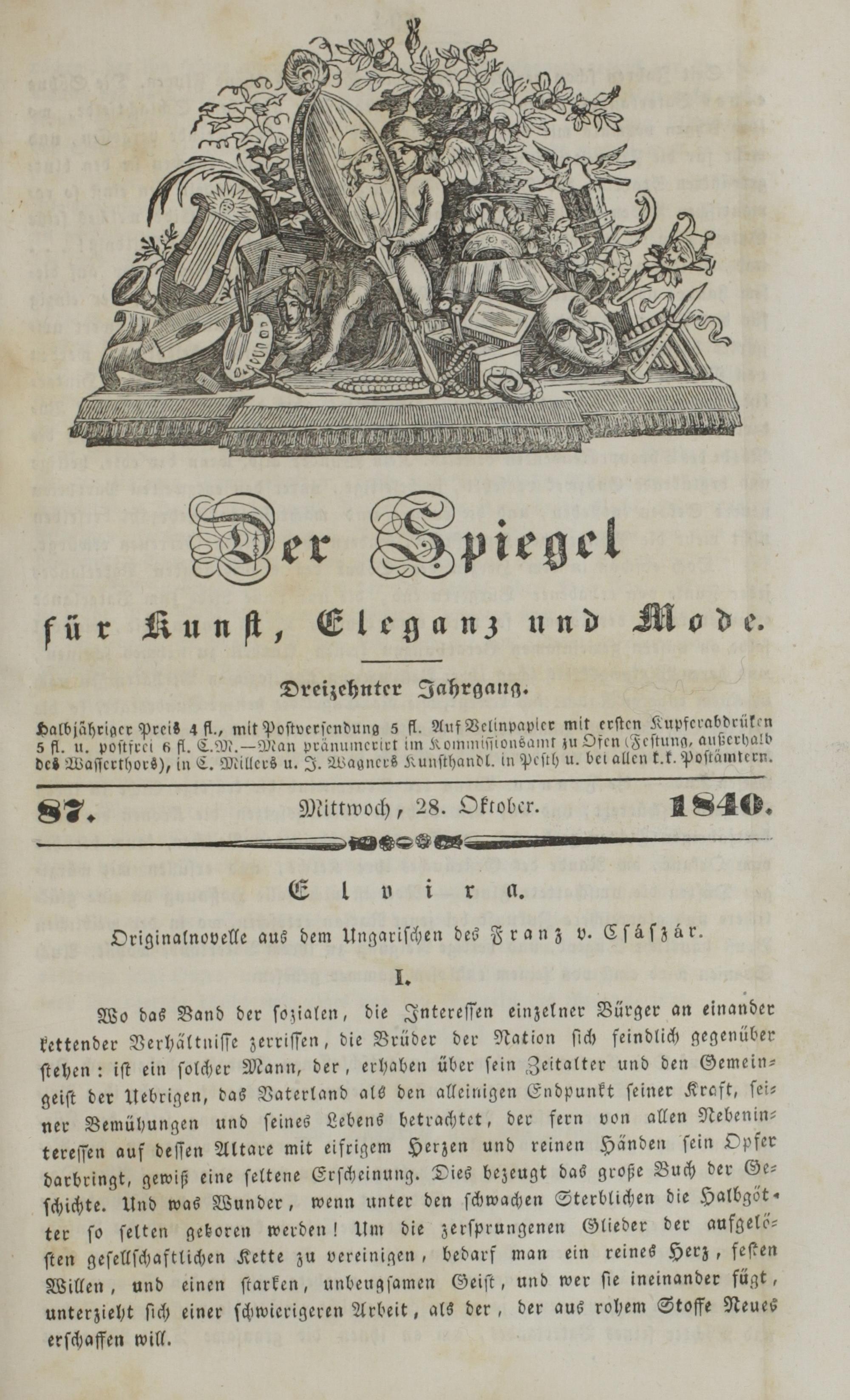 Der Spiegel für Kunst, Eleganz und Mode. 1835-1840