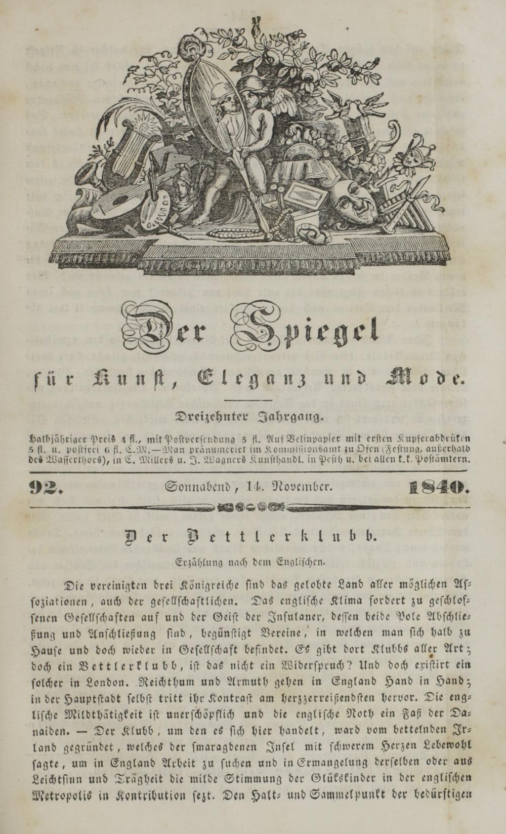 Der Spiegel für Kunst, Eleganz und Mode. 1835-1840