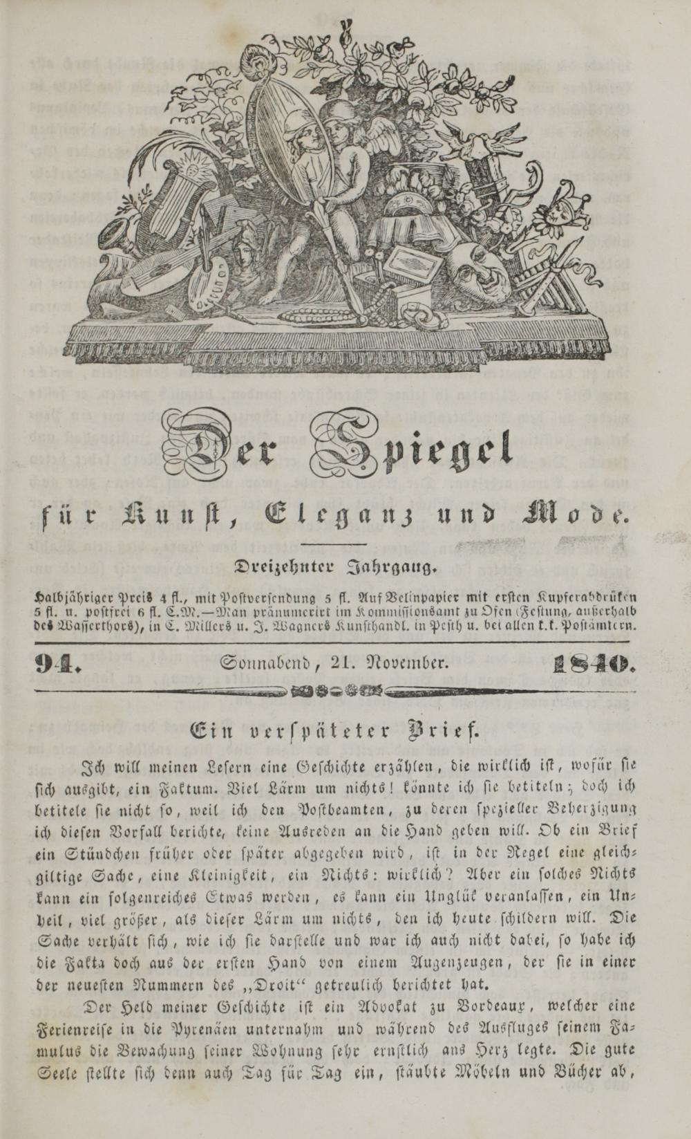 Der Spiegel für Kunst, Eleganz und Mode. 1835-1840