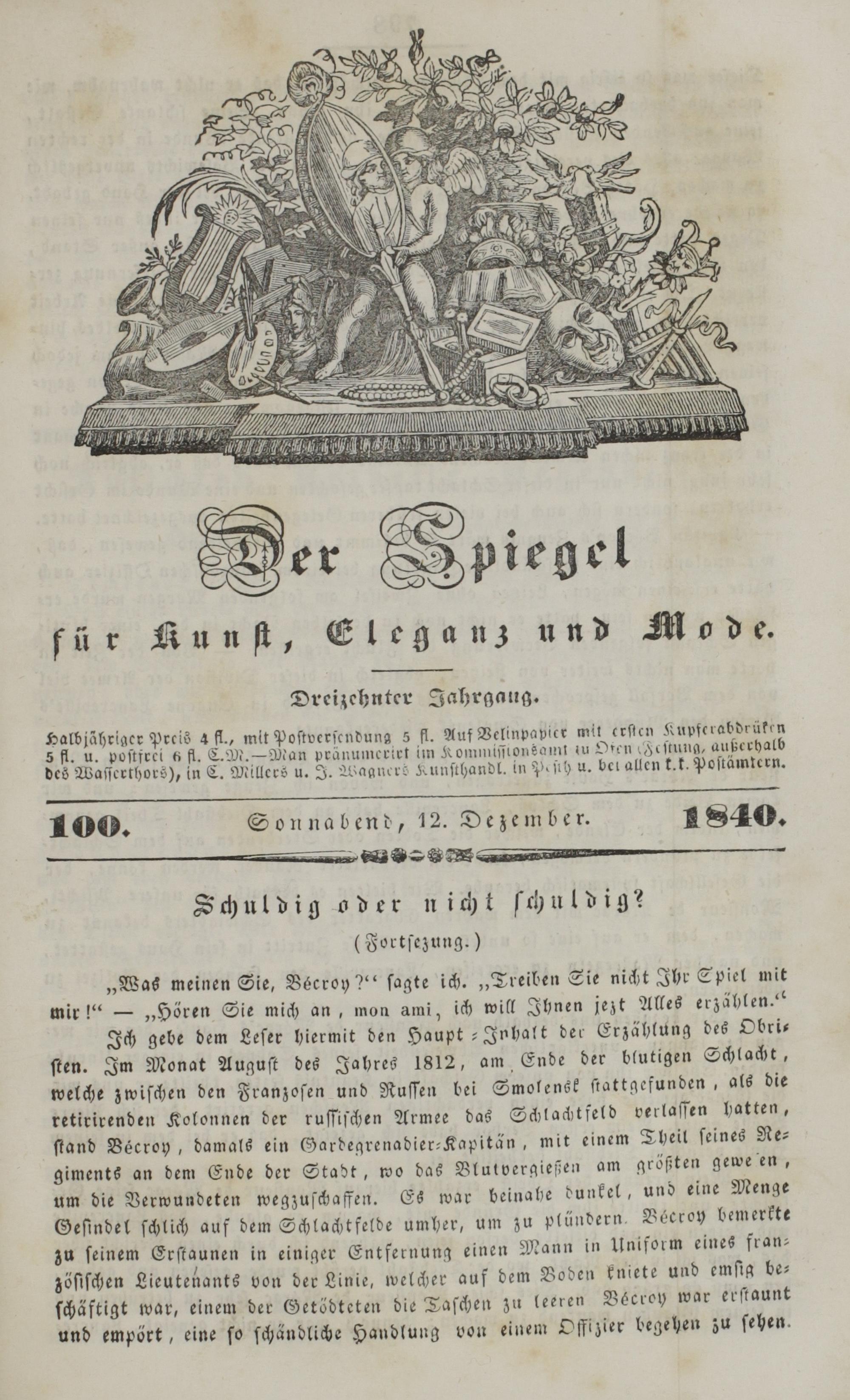 Der Spiegel für Kunst, Eleganz und Mode. 1835-1840