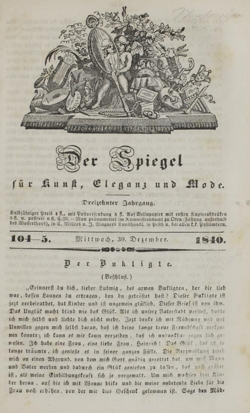 Der Spiegel für Kunst, Eleganz und Mode. 1835-1840
