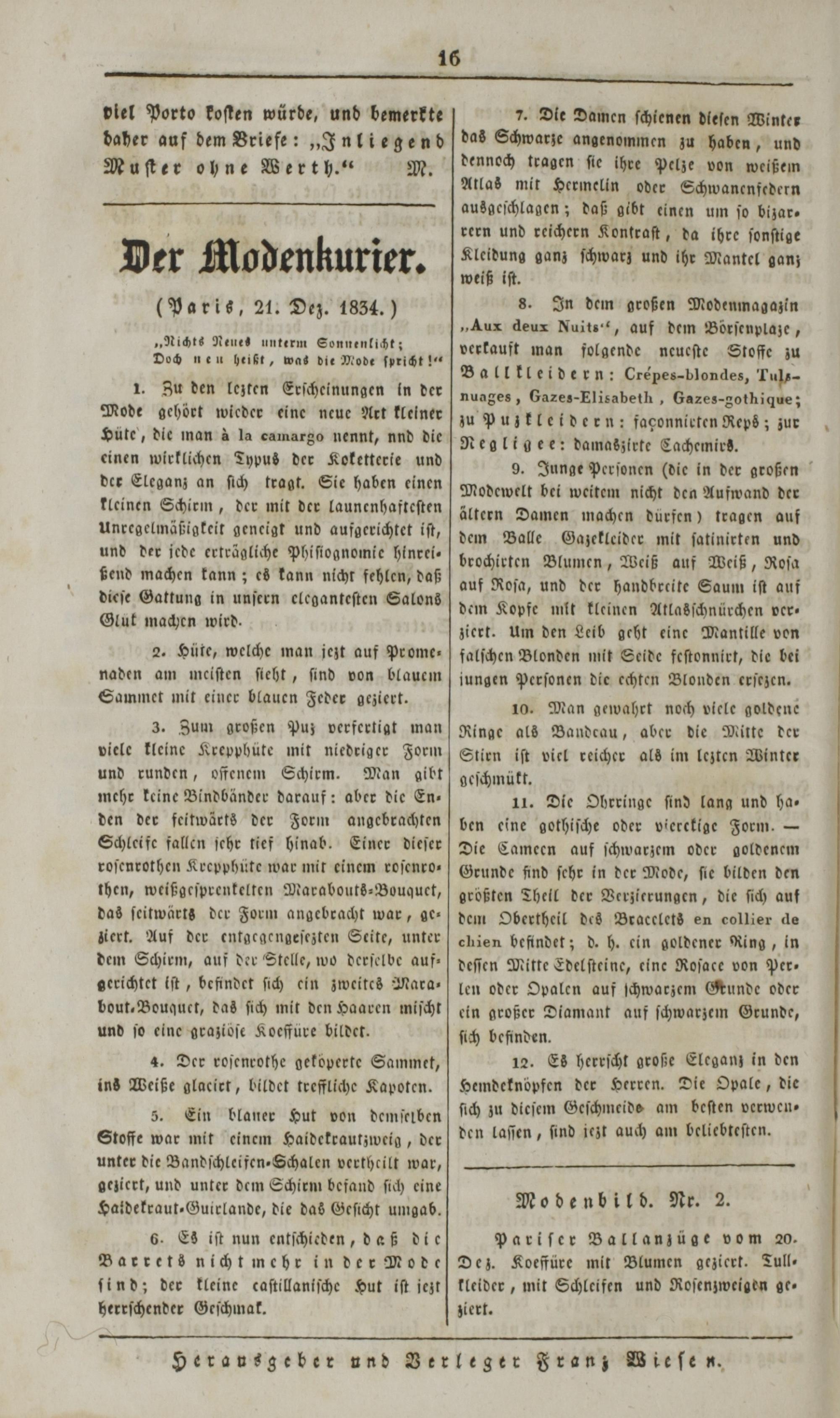 Der Spiegel für Kunst, Eleganz und Mode. 1835-1840
