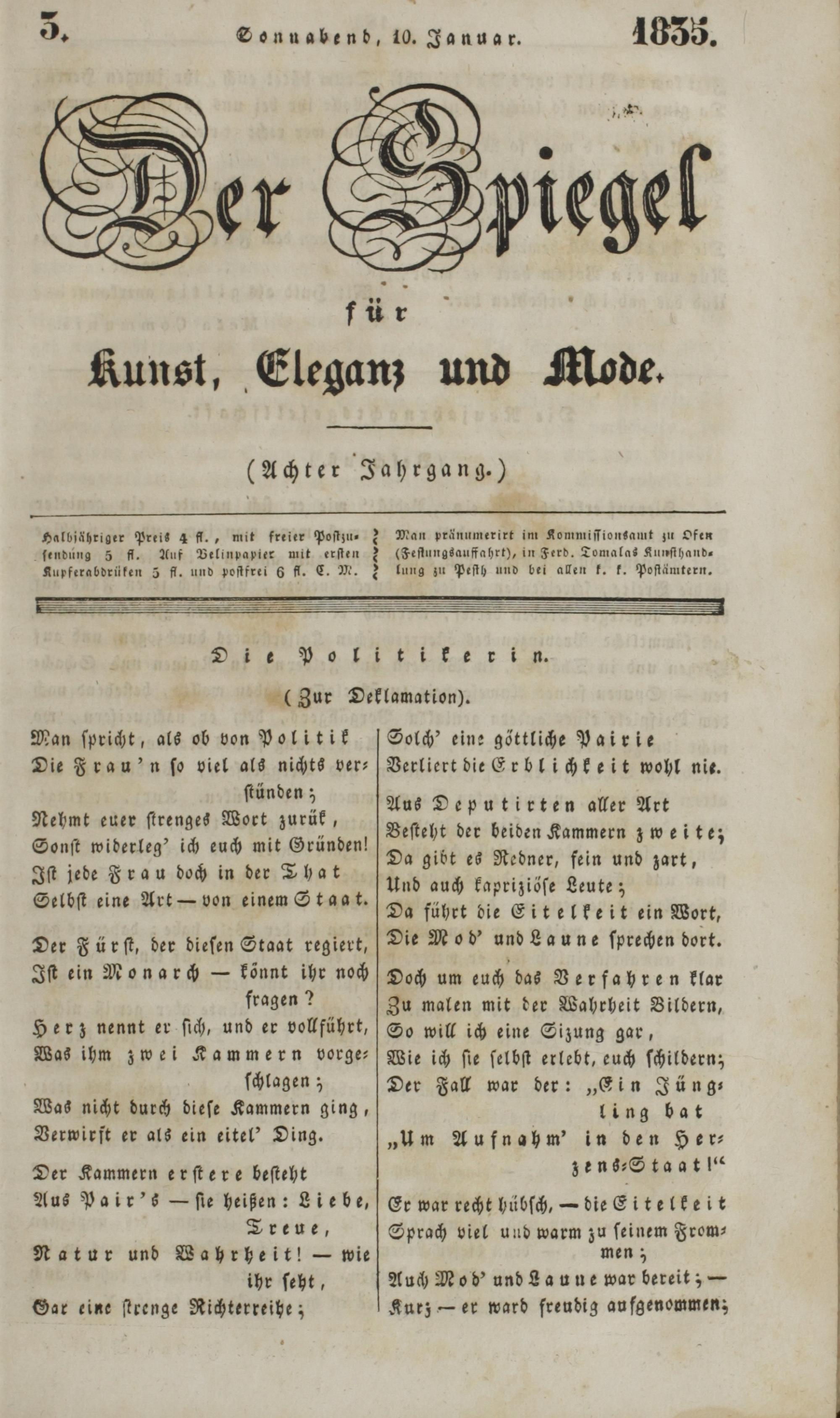 Der Spiegel für Kunst, Eleganz und Mode. 1835-1840