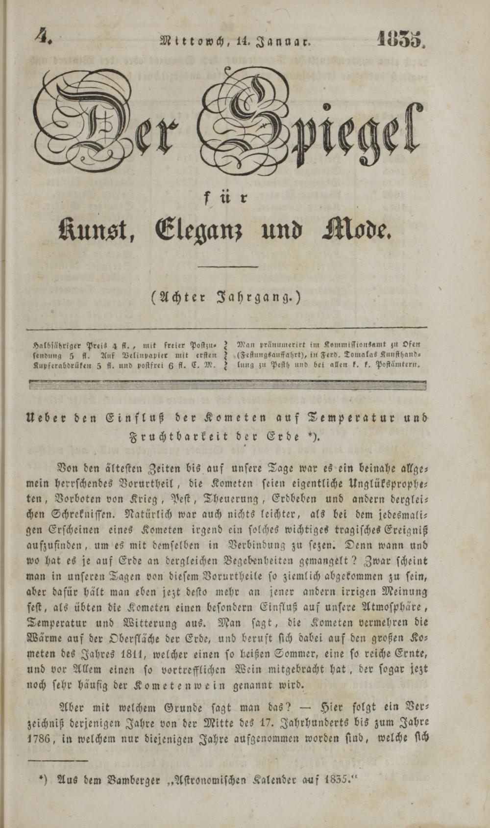 Der Spiegel für Kunst, Eleganz und Mode. 1835-1840