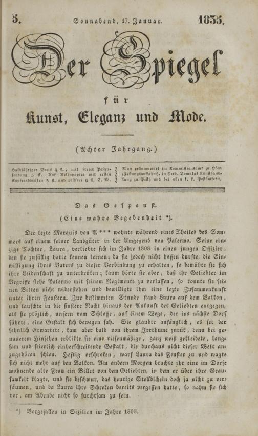 Der Spiegel für Kunst, Eleganz und Mode. 1835-1840