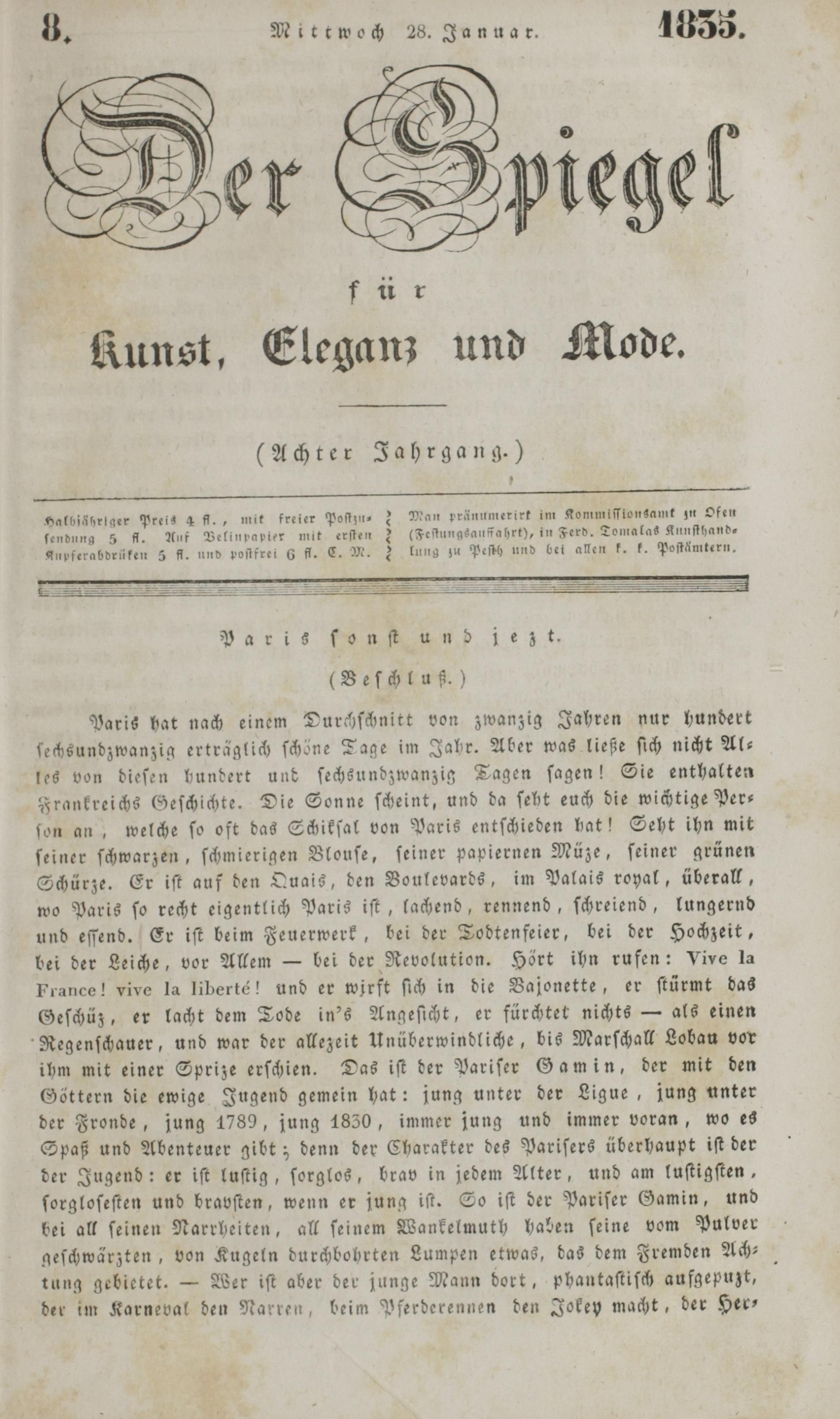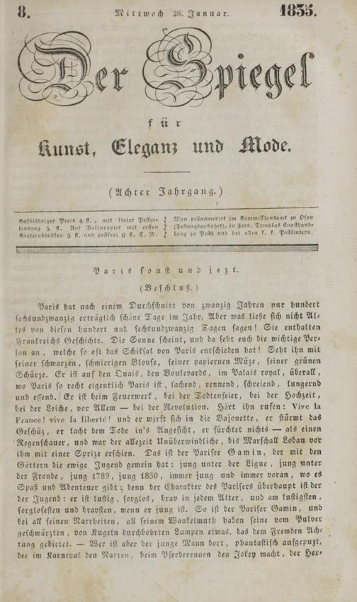Der Spiegel für Kunst, Eleganz und Mode. 1835-1840