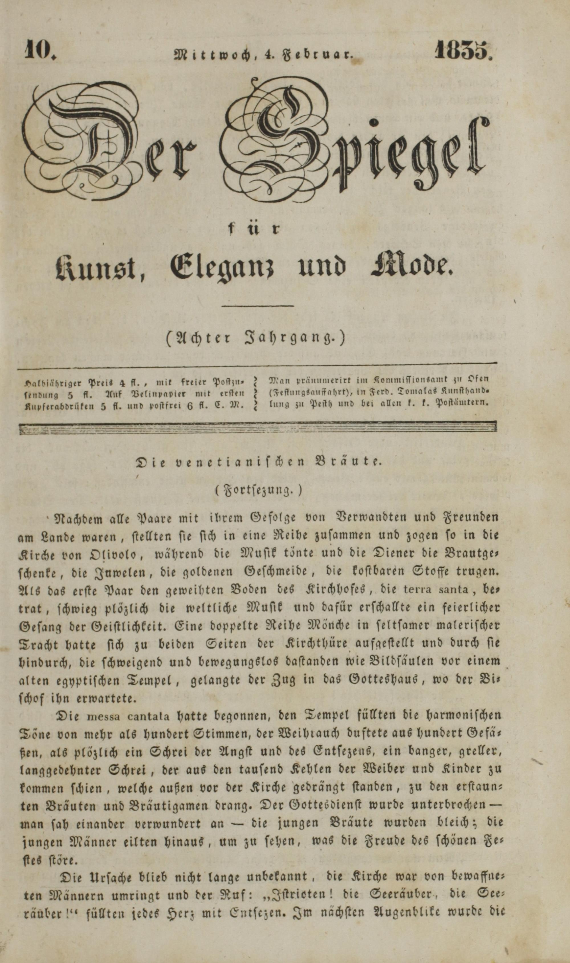 Der Spiegel für Kunst, Eleganz und Mode. 1835-1840
