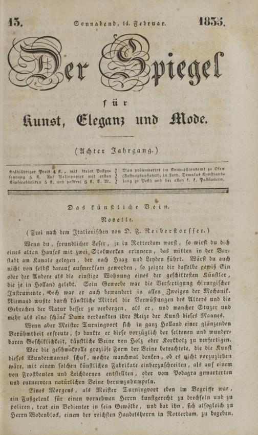 Der Spiegel für Kunst, Eleganz und Mode. 1835-1840