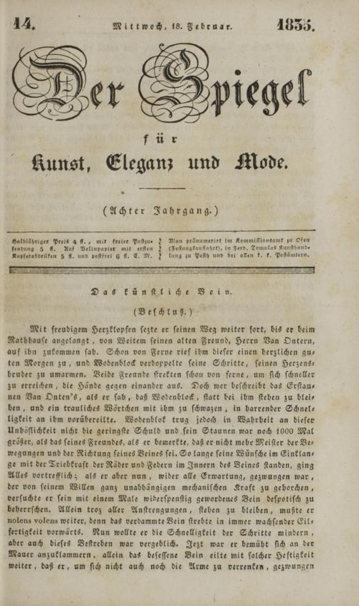 Der Spiegel für Kunst, Eleganz und Mode. 1835-1840