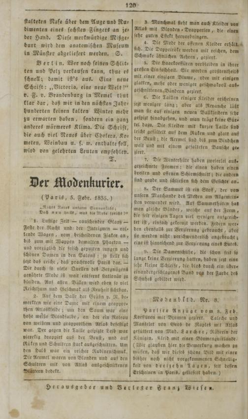 Der Spiegel für Kunst, Eleganz und Mode. 1835-1840