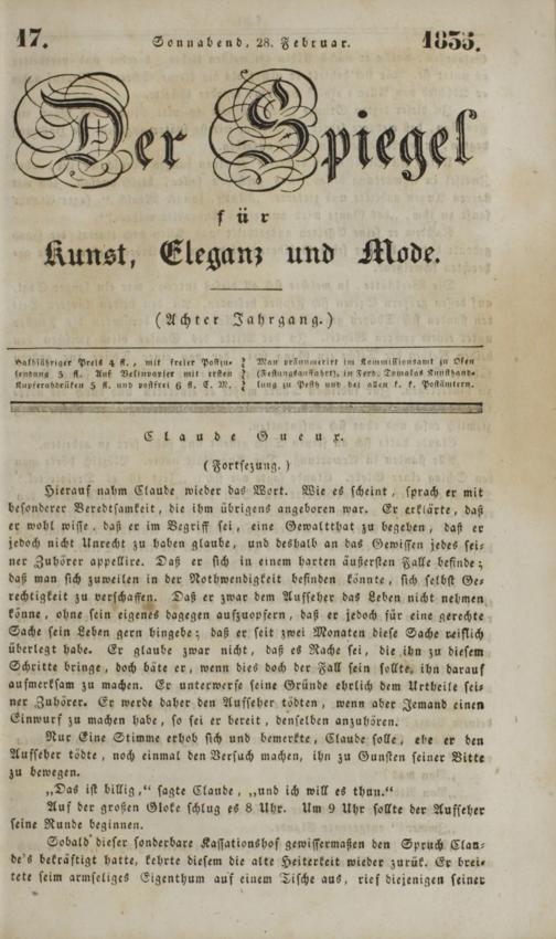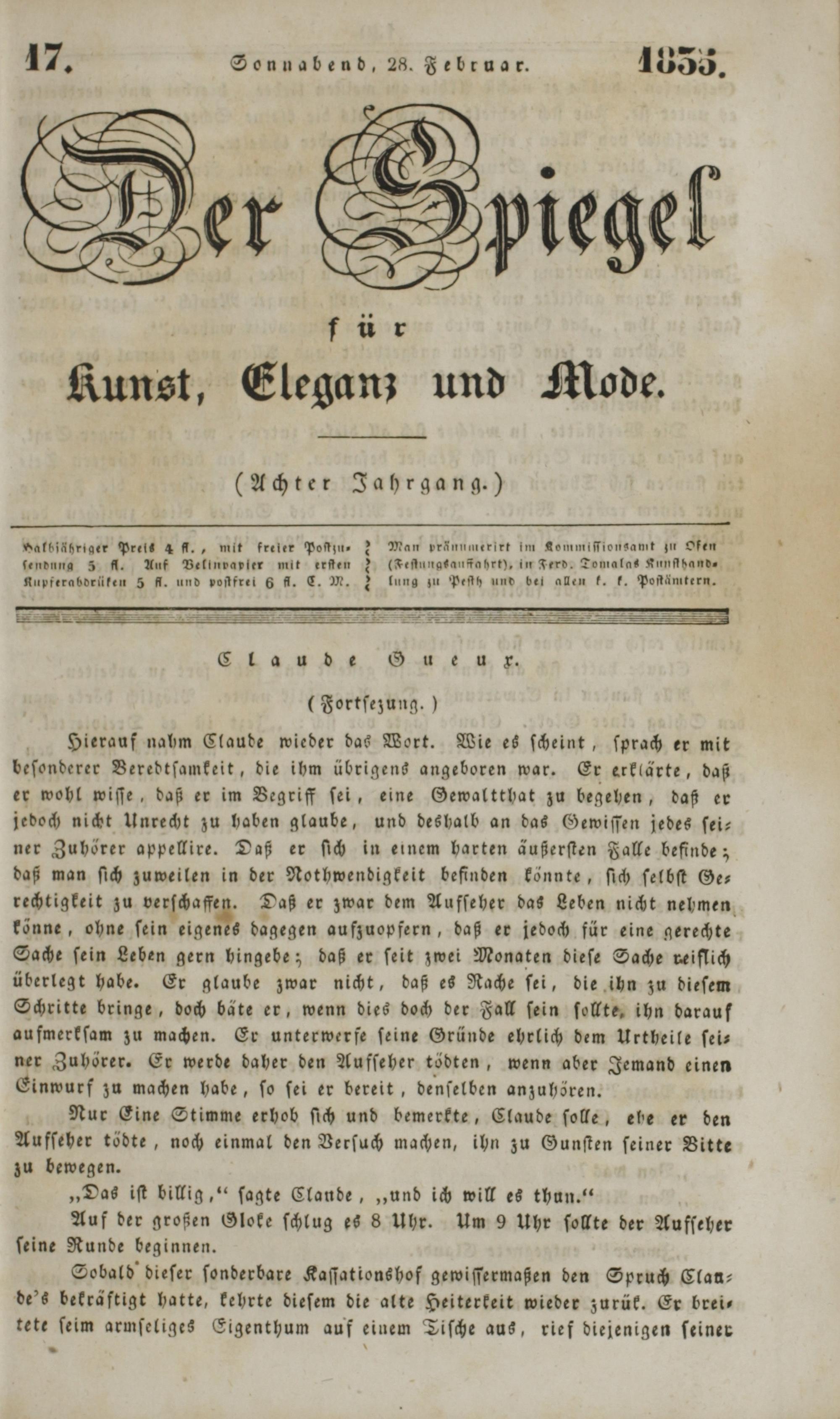 Der Spiegel für Kunst, Eleganz und Mode. 1835-1840
